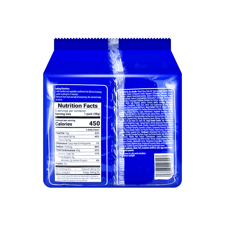 Savor the rich and flavorful taste of the sea with this delicious Seafood Noodle Soup. This instant noodle dish is made with a light and smooth broth, filled with delicious seafood noodles. Ready in just minutes, this 5 pack of noodles is perfect for busy days or when you want a quick, satisfying meal. Enjoy the taste of the ocean anytime, anywhere with Seafood Noodle Soup.